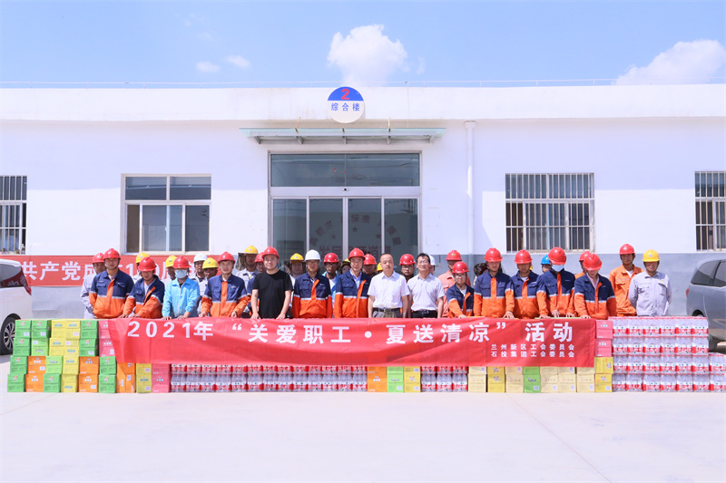 大暑將至,為進一步做好職工夏季高溫期間防暑降溫工作,關(guān)愛廣大一線職工的健康安全,把對廣大職工的關(guān)心關(guān)愛落到實處,7月21日,新區(qū)工會聯(lián)合石投集團工會開展“關(guān)愛職工·夏送清涼”活動,深入蘭州新區(qū)化工園區(qū)項目建設和生產(chǎn)一線開展慰問活動。新區(qū)黨群工作部副部長秦利軍、石投集團工會主席劉東斌一行深入項目現(xiàn)場,為一線職工送去防暑物資和關(guān)懷。