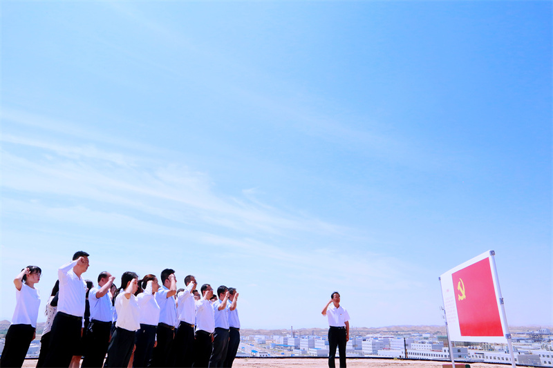 (全體黨員在蘭州新區(qū)綠色化工園區(qū)重溫入黨詩(shī)詞 周小勇/攝)