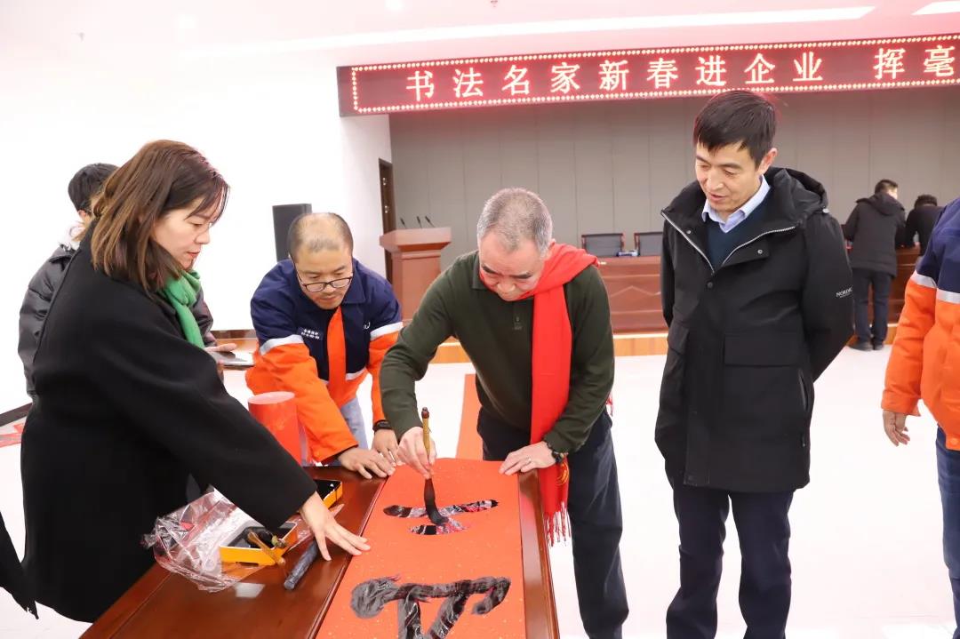 1月26日下午,蘭州新區(qū)美術(shù)家、書(shū)法家協(xié)會(huì)主席王先銀,副主席王安祥(2021年中國(guó)共產(chǎn)黨成立100周年獲得人民藝術(shù)家榮譽(yù)稱(chēng)號(hào)),秘書(shū)長(zhǎng)魏世全等6名書(shū)法名家赴石化集團(tuán)同集團(tuán)黨委副書(shū)記、總經(jīng)理姜錦,工會(huì)主席劉東斌,副總經(jīng)理李剛,總工程師葉得強(qiáng)一道為公司員工送“?!?、送春聯(lián),提前送上了新春的祝福與問(wèn)候。