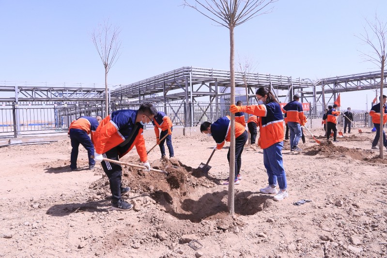 活動現(xiàn)場,黨員干部們熱情高漲、干勁十足,揮動鐵鍬、放置樹苗、填土踩實、澆水灌根,大家相互配合,有序分工,種植現(xiàn)場一片熱火朝天的景象。在大家的共同努力下,一棵棵新栽種的苗木昂首挺立,錯落有致,展現(xiàn)出勃勃的生機。