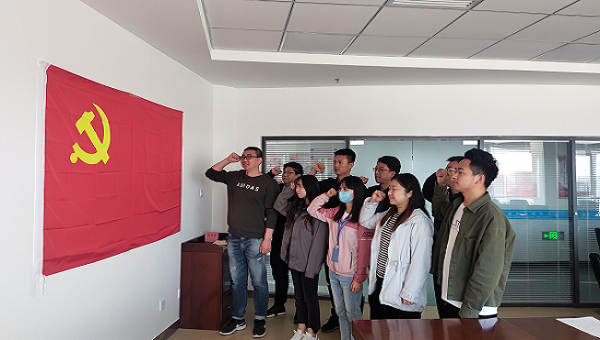 支部全體黨員和入黨積極分子在支部委員的帶領(lǐng)下,舉起右手,面對鮮紅的黨旗莊嚴(yán)宣誓,重溫入黨誓詞,追憶入黨初心,進(jìn)一步堅(jiān)定理想信念,增強(qiáng)責(zé)任感和使命感。