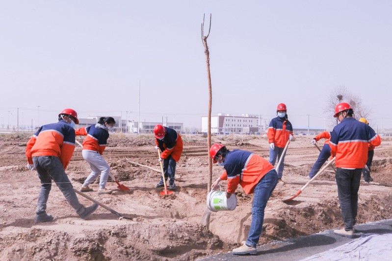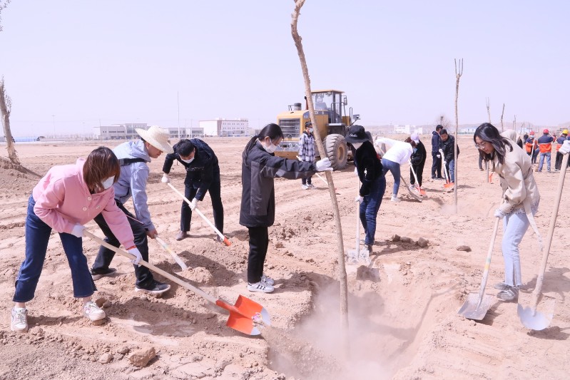 活動(dòng)中,大家熱情高漲,分組協(xié)作,揮動(dòng)鐵鍬,扶正樹苗,填土踩實(shí),提桶澆水一氣呵成,忙而有序,植樹現(xiàn)場(chǎng)呈現(xiàn)出一副熱火朝天的勞動(dòng)景象。為保證樹苗的成活率,專業(yè)人員現(xiàn)場(chǎng)對(duì)苗木栽植、澆水、養(yǎng)護(hù)等工作進(jìn)行全程指導(dǎo)和監(jiān)督,確保植樹造林質(zhì)量。經(jīng)過大家的辛勤勞動(dòng)和努力,一株株樹苗迎風(fēng)矗立,給化工園區(qū)增添了一道亮麗的風(fēng)景線。