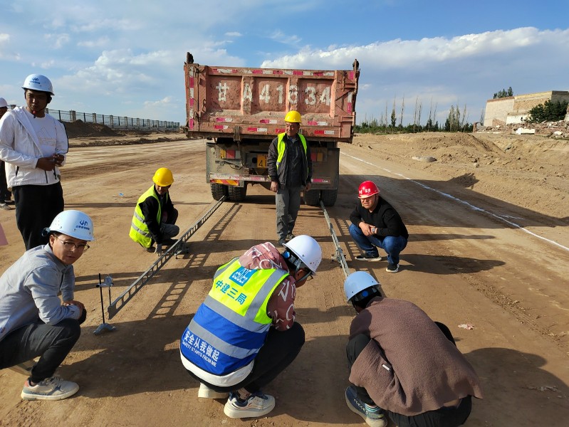 此次路基工程中間交工驗收段為經(jīng)40路(k0+000-k0+730段)、緯51路(K0+580---K1+300段)。交驗小組嚴格按照驗收標準和規(guī)范,分別對路基彎沉、壓實度、高程、寬度等指標進行了檢查驗收,經(jīng)現(xiàn)場檢測,各項指標均符合設計圖紙及規(guī)范要求,具備轉(zhuǎn)入下道工序的施工條件,驗收順利通過。此次路基分段順利交驗,為后續(xù)路基交驗奠定了基礎,也為路面施工創(chuàng)造了良好條件。